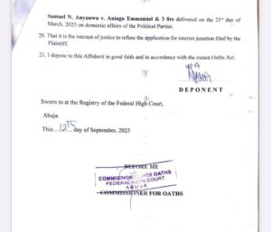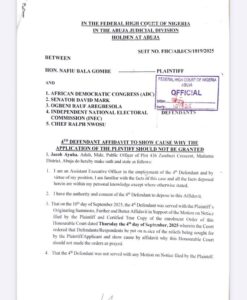 ADC has released INEC’s affidavit dated 12 September 2025 that affirmed David Mark led NWC
