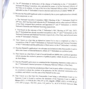 Please pay particular attention to Clauses 14 to 19, which affirm that the leadership transition had already been completed and recognized by INEC, and that such internal party matters fall outside the scope of judicial interference.
